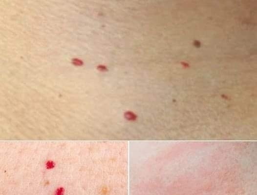 These are seen as small, raised, bright red bumps, and come from an overgrowth of blood vessels. Cherry angiomas are completely harmless in the main, and are often more common as we age.